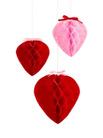 Honeycomb Hearts Hanging Decorations, Pack of 3