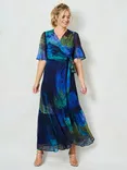 The Jacqueline Tie Waist Maxi Wrap Dress, Blue/Multi