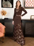 There is 1 result, Your applied filters are, colour brown, material polyester blend, length maxi,