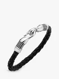 Men's Braided Leather Ribbed Hook Bracelet, Black/Silver