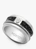 Pebbled Leather Spinning Ring, Silver/Black