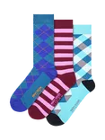 Happy Socks Lite Argyll & Stripe Socks, Pack of 3, Multi