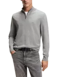 BOSS Padro Half Zip Cotton Jumper, Silver