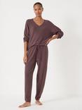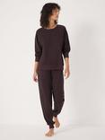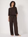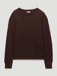 HUSH Emily Puff Sleeve Cotton Jersey Top, Dark Brown