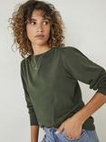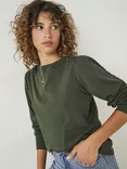 HUSH Emily Puff Sleeve Cotton Jersey Top, Dark Khaki