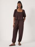 HUSH Palm Print Linen Rich Trousers, Chocolate/White