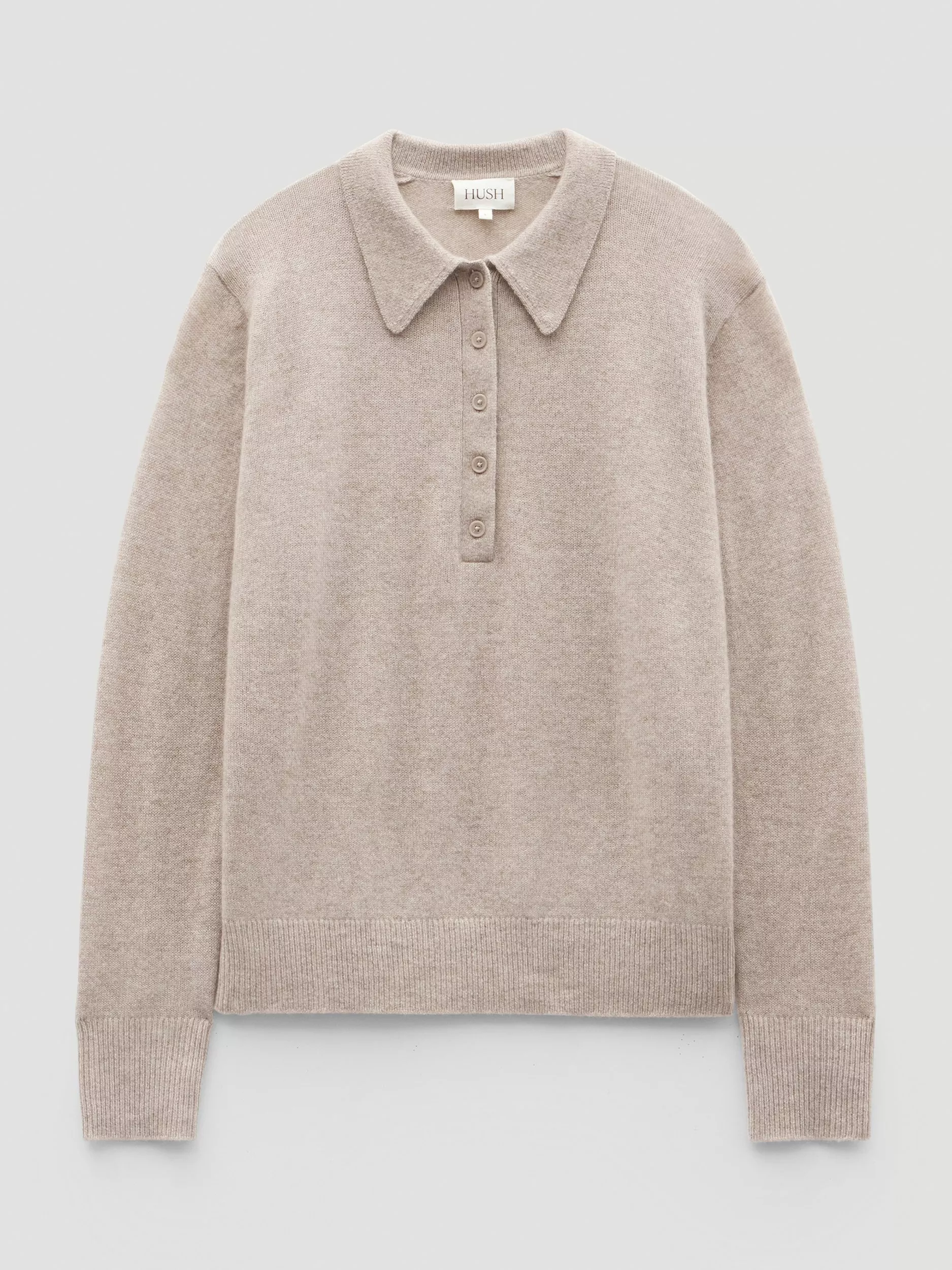 HUSHCashmere Rich Long Sleeve Polo Jumper£160.00Oatmeal Marl is availablePale Blue is unavailable+ More colours available