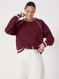 Stripe Rib Raglan Sleeve Sweatshirt, Wine Red