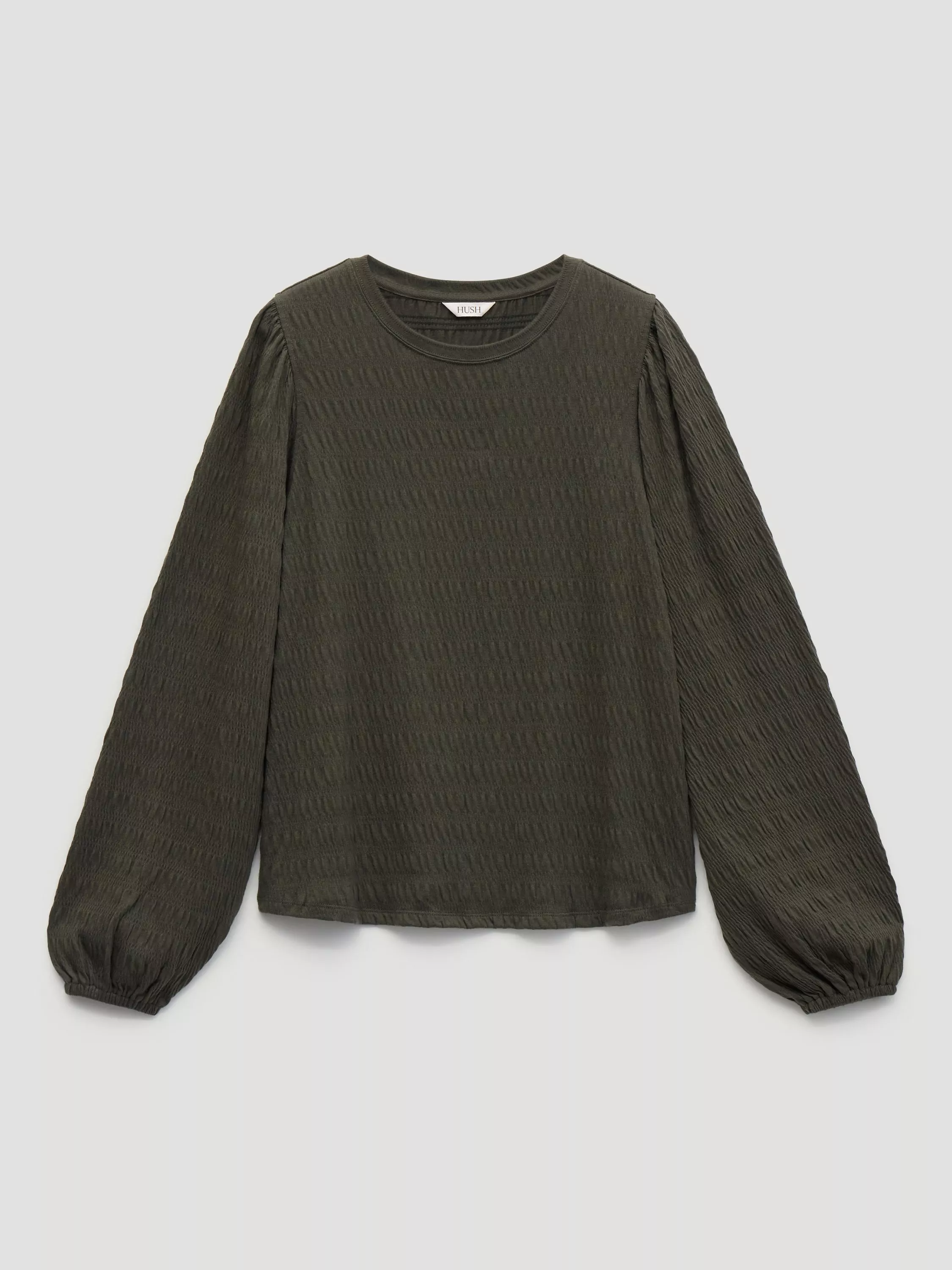 HUSHThalia Seersucker Jersey Top, Dark Khaki Green£50.00Dark Khaki Green is availableStone White is available+ More colours available