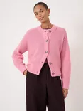 HUSH Cable Knit Drawstring Wool Rich Cardigan, Strawberry Pink