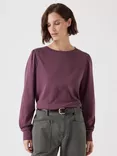 HUSH Emily Puff Sleeve Cotton Jersey Top, Dark Red