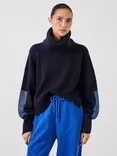 Livvy Merino Wool Detachable Roll Neck Jumper, Navy