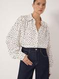 HUSH Geometric Revere Collar Shirt, Dark Red/White