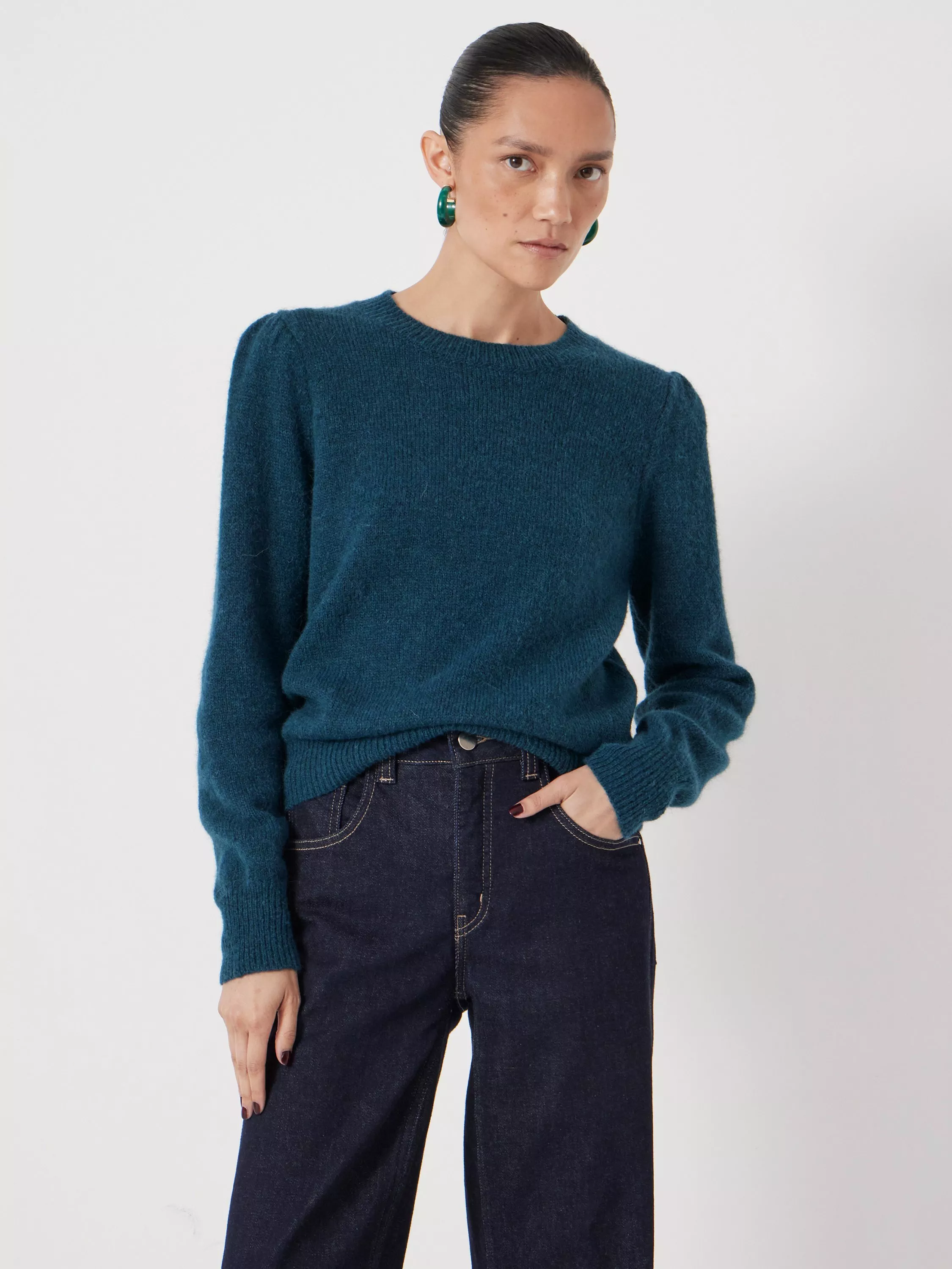 HUSH Gathered Shoulder Wool Blend Jumper, Off White