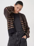 Skye Stripe Wool Rich Cardigan, Black/ Brown