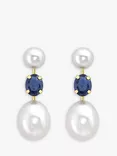 9ct Gold Double Pearl & Sapphire Drop Earrings, Gold