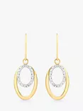 9ct Gold 2 Tone Double Oval Drop Earrings, White/Gold
