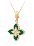 Malachite Flower Pendant Necklace, Yellow Gold/Multi