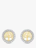9ct Gold Cubic Zirconia Life Tree Stud Earrings, Yellow Gold/White Gold