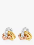 9ct 3 Colour Gold Knot Stud Earrings, Yellow Gold/Multi