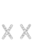 18ct White Gold Cubic Zirconia Cross Earrings, Silver
