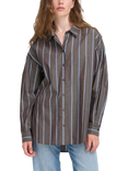 ICHI Sadia Striped Cotton Blouse, Brown/Multi