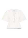 Ihxhazel Cotton Polka Dot Tie Front Blouse, Cloud Dancer