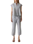 Fine Stripe V-Neck Top, Navy/White