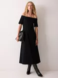 Cotton Short Sleeve Bardot Neck Midi Dress