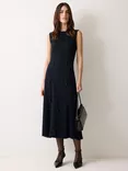 Embellished Pure Wool Midi Dress, Navy