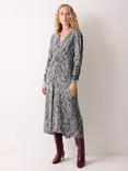 Long Sleeved Feather Print Midi Dress, Blue/Multi