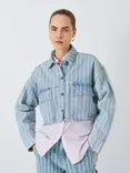 Stripe Cropped Denim Jacket, Blue