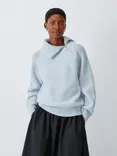 Wool Blend Asymmetrical Zip Neck Jumper, Pale Blue