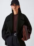 John Lewis Double Breasted Boucle Wool Coat, Black, Black