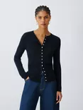 V-Neck Seam Detail Cotton Blend Cardigan, Denim Blue