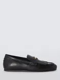 John Lewis Fly Penny Leather Coin Fringe Moccasins, Black