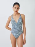 John Lewis Kia Floral Ruched Swimsuit, Blue/Multi
