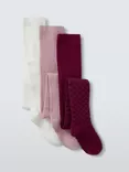 John Lewis Kids' Heart/Plain/Stripe Tights, Pack of 3, Multi