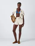 Palm Embroidery Shorts, Cream