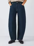 John Lewis Barrel Leg Mid Rise Jeans, Deep Blue, Deep Blue