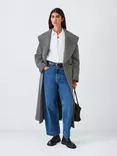 John Lewis Monochrome Stripe Wool Blend Belted Coat, Black/White, Black/White