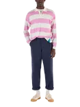 John Smedley Merino Wool Stripe Regular Fit Rugby Shirt, Snow White/Misty Rose