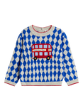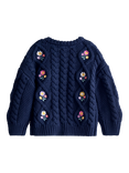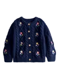 JoJo Maman Bébé Kids' Embroidered Chunky Knit Cardigan, Navy
