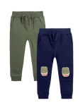 JoJo Maman Bébé Kids' Cotton T-Rex Joggers, Pack of 2, Khaki