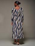 Jolie Moi Roll Collar Long Sleeve Midi Dress, Navy