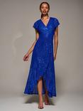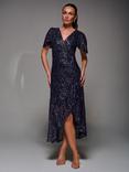Jolie Moi Zeena Mesh Ruched Wrap Dress, Navy