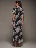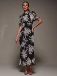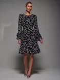 Jolie Moi Abstract Pleated Midi Dress, Cream/Black, Cream/Black