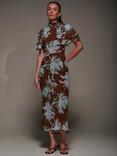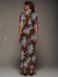 Jolie Moi Angel Sleeve Wrap Dress, Brown Abstact