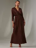 Satin A-Line V-neck Midaxi Dress, Green