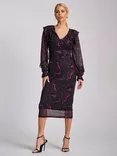 Abstract Ruffle Mesh Bodycon Dress, Black/Fuchsia